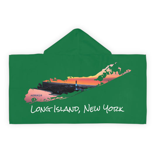 Youth Hooded Towel Green - Fire Island Lighthouse
